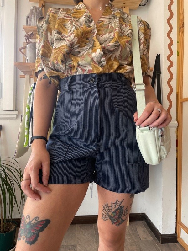Se abrocha con botón y ojal. Lleva las infaltables pinzas y pasa cintos.