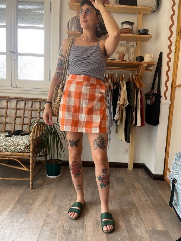Para que sea una falda! sumamos una "media falda" con pinzas! y en la zona de la cintura un lazo, para que puedas atarla de costado.