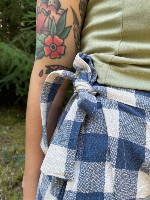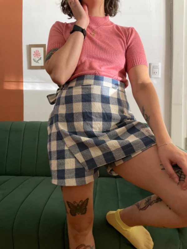Para que sea una falda! sumamos una "media falda" con pinzas! y en la zona de la cintura un lazo, para que puedas atarla de costado.