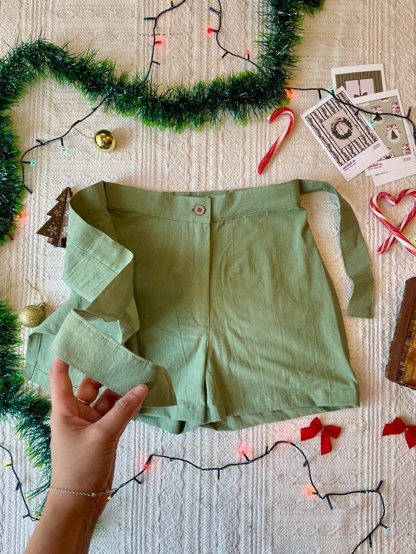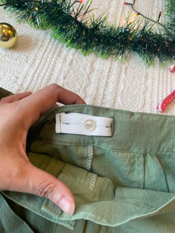 En la parte trasera interna de la cintura, lleva un elástico ojalado, para que puedas ajustar la cintura dependiendo tu comodidad!