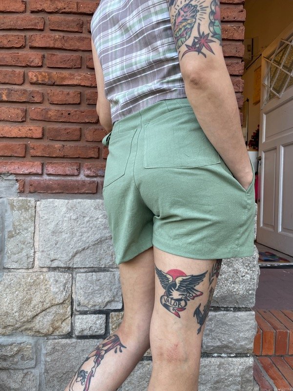En la parte delantera, es la clásica bermuda #vencejo, con cierre de 20cm YKK para que pasen cómodas tus caderas!